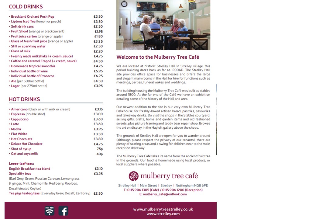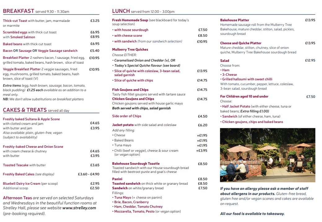 Please do not sit at the courtyard tables if you have ordered a takeaway. There are other tables available around the Strelley Hall grounds.